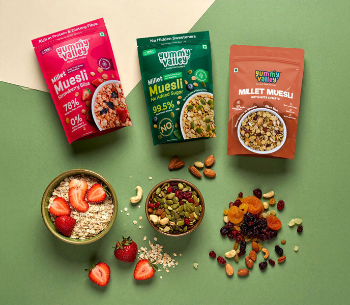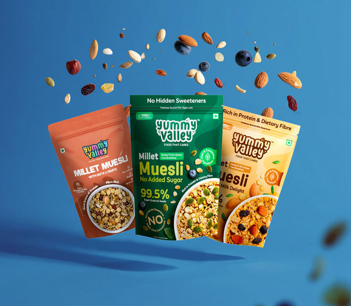 āIāve been having Yummy Valleyās Millet Muesli Fruit & Nut for breakfast, and itās become my go-to! Itās super easy to make, really tasty, and keeps me full for hours. I love that itās made with millets, has no refined sugar, and is packed with real fruits and crunchy nuts. Perfect for busy mornings when I want something quick, healthy, and satisfying!ā