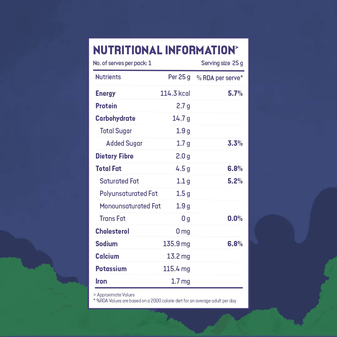 🌾 Rich in Dietary Fibre – 2.0 g per 25 g serving