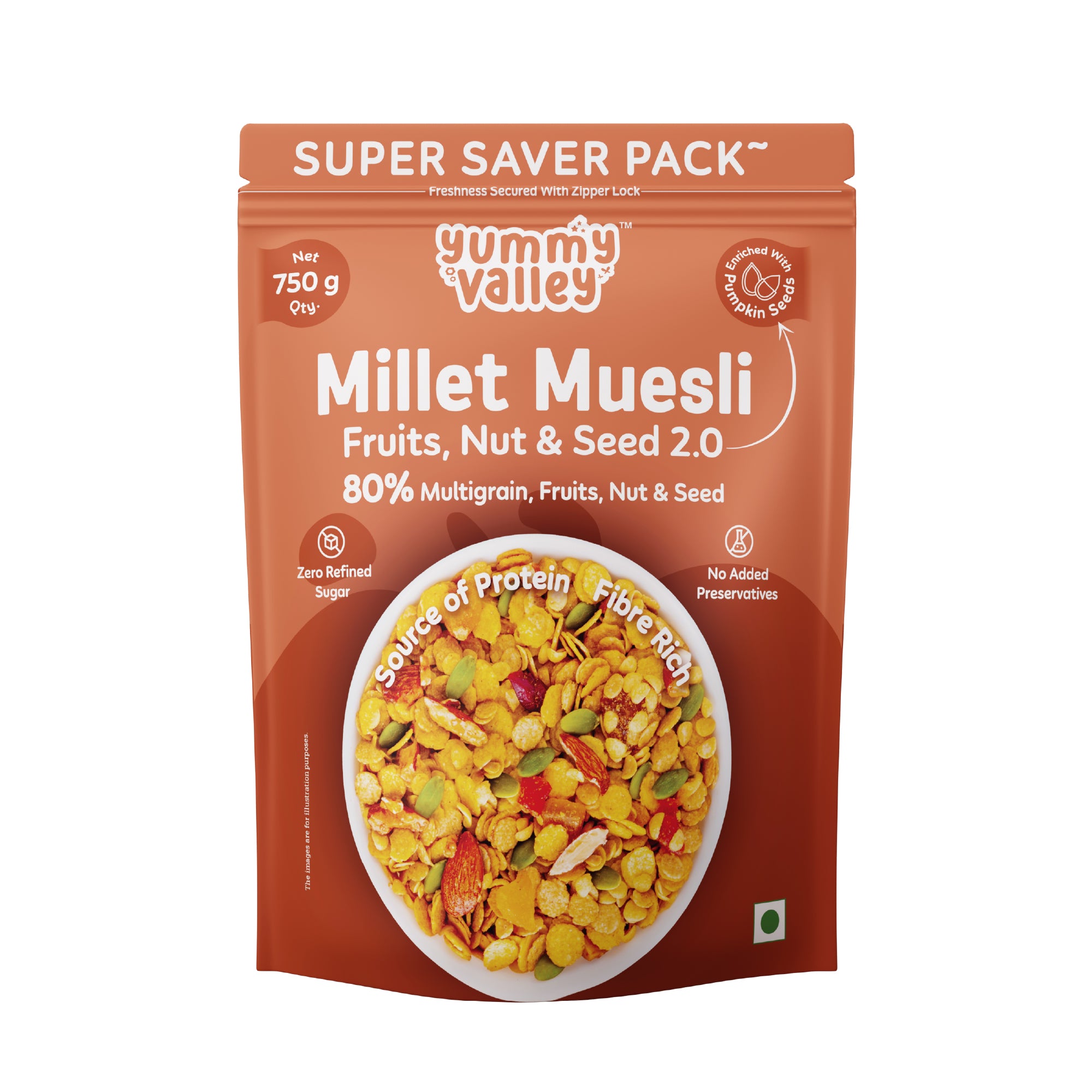 Yummy Valley Millet Muesli Fruits, Nuts & Seeds – 250g